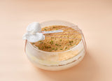Layers of sponge cake, pistachio cream, Kunafa and cream