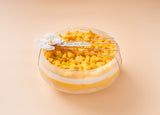 Layers of sponge cake, mango sauce, cream and fresh mango Fruit
